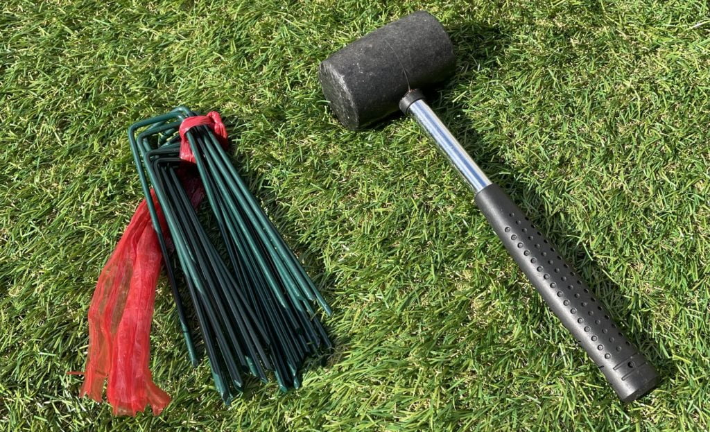 もちろん、モダンデコの人工芝には風で飛んでいかないようにピンも付属されています。